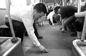在514路公交車車廂里,經常出現這樣一幕場景:身材敦實的王忠良,一上車就低頭尋找黏在車廂角落里的口香糖,隨手掏出鏟子開始清理。在別人看來,這似乎是“沒事找事”,但他看來,“我就想讓乘客坐在車上能舒舒服服的。”