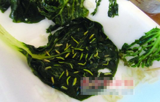 一高校食堂青菜吃出76條菜蟲 發公告致歉(圖)