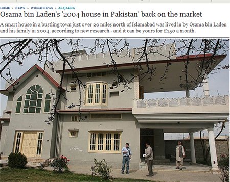國際在線專稿:據英國《每日電訊報》3月9日報道,最新研究發現,基地組織前領導人本·拉登(Osama bin Laden)一家2004年曾藏身巴基斯坦首都北部一個小鎮中。現在,拉登一家曾經居住的別墅將被出租,每月租金150英鎊(約合1500元人民幣)。