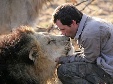 獅語者- Kevin Richardson 動物行為專家Kevin Richardson對大貓動物有著天生的好感,同時非常了解動物的他也敢做一些常人不敢做的事情。比如他曾和一只野生獅子過夜睡覺,親吻與耳語更是經常的事情。