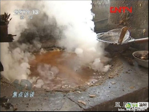 中新網訊 近日,浙江警方在金華查獲3200余噸地溝油,主要由屠宰場的廢棄物壓榨而成,包括豬皮、牛皮、羊皮上刮下的碎末,還有一些存放時間過長已變質的動物內臟。警方稱,這些地溝油被制成食品和火鍋底料等,已銷往上海重慶等地。圖為動物內臟熬制的油脂半成品。
