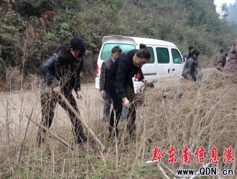 在植樹現場,鄉人大主席楊麗春帶頭揮鏟撬土,代表們積極參與,有的挖樹窩,有的放樹苗,有的蓋土。在鄉林業站技術人員的指導下,按照技術人員的要求,精心栽培每一顆樹苗,確保每一顆樹苗能成活。在近三個小時的時間里,代表們完成從尚寨臘巖橋到律令中寨共計2000多顆柏樹苗的栽培。