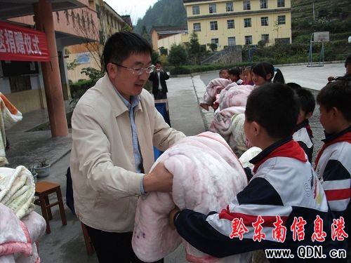 在雷山縣扶貧辦的牽線搭橋下,11月29日,浙江省慈溪市政協委員黃柏皮先生400條愛心毛毯送達方祥,并在方祥民族小學舉行現場發放儀式。
