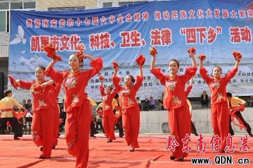 11月2日上午,在舟溪農貿市場一寬敞的場地上,被趕集的人群圍個水泄不通,臺中的精彩表演,迎得觀眾的陣陣掌聲和歡笑聲,而過往的人群,有的手上拿著宣傳畫、有的拿著農科技、法律知識讀本仔細看讀。凱里市委、市人民政府主辦,市委宣傳部等多家單位承辦的文化、科技、衛生、法律“四下鄉”活動在這里舉行,為當地農民群眾送戲、送醫、送法律、送技術。