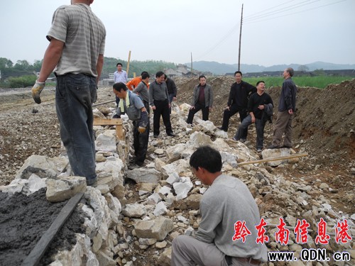 王經(jīng)勇在工地上認(rèn)真查看工程進(jìn)度和質(zhì)量情況,并聽取花橋、嫩寨兩村負(fù)責(zé)人對工程施工情況的匯報,查看中還與工程承包方了解具體施工情況。他認(rèn)為,工程施工總體較好,同時強調(diào),有一處約10米長的機耕道兩側(cè)漿砌圍埂存在被壓斜現(xiàn)象,要重修。在水渠建設(shè)工地上,王經(jīng)勇看到施工人員在辛勤的施工,在與承包方談話中強調(diào):施工在抓進(jìn)度的同時,要抓好安全和質(zhì)量。(龍章乾)