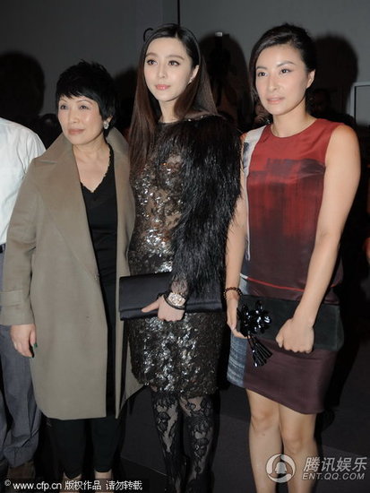 騰訊娛樂2010年8月28日北京訊,某品牌秋冬新品發(fā)布會8月27日舉行。范冰冰 一身別致的類似皮草的禮服大顯貴氣,她還頻頻撩發(fā)秀風(fēng)情,十分美艷。郭晶晶則是紅裙亮相,與范冰冰臺下緊抱,十分親密。